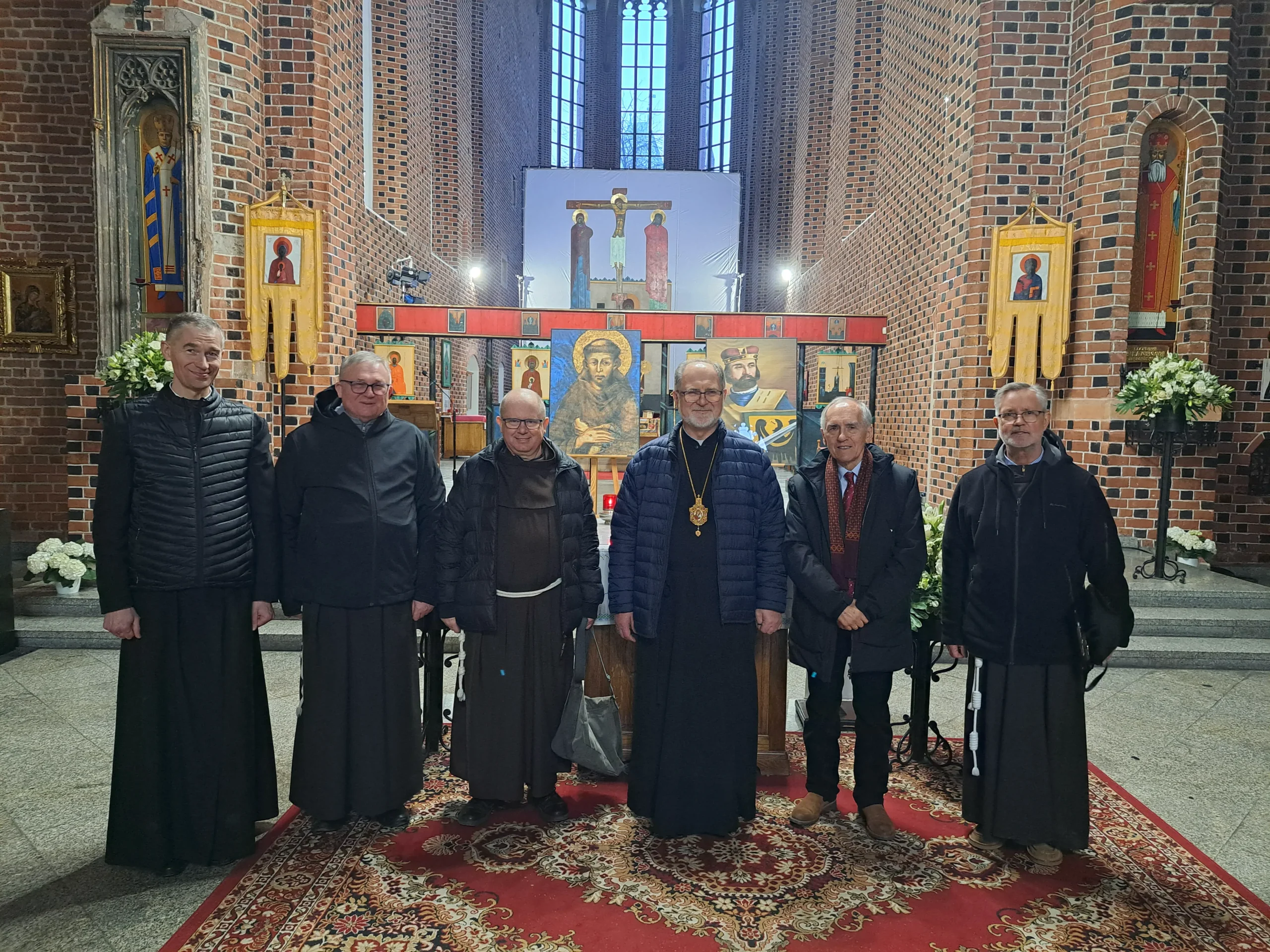 Uczestnicy Dnia Skupienia Bractwa z 29 stycznia 2022 r. Siedzą od lewej: Izabela Wańkowicz, Barbara Engel, Dorota Czudowska, Alfreda Walkowska, Anna Sutowicz. Stoją od lewej: o. Damian Stachowicz ofm, ks. Mariusz Majewski, Marek Mojecki, Andrzej Wańkowicz, Stanisław Andrzej Potycz, ks. Bogusław Drożdż, Arkadiusz Muła, Waldemar Engel, Patryk Tomczak, Stanisław Sołtysik, Jacek Osiewała, Marian Kret, ks. Marian Kopko.